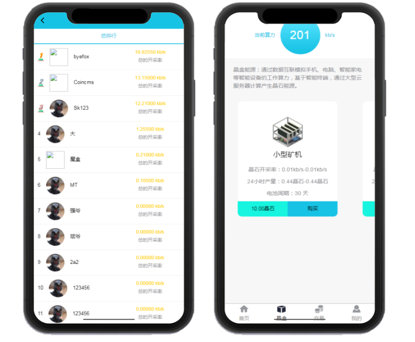 【Thinkphp魔晶挖矿区块链】运营版+晶盒数字资产交易超级能源新应用+矿机市场开源