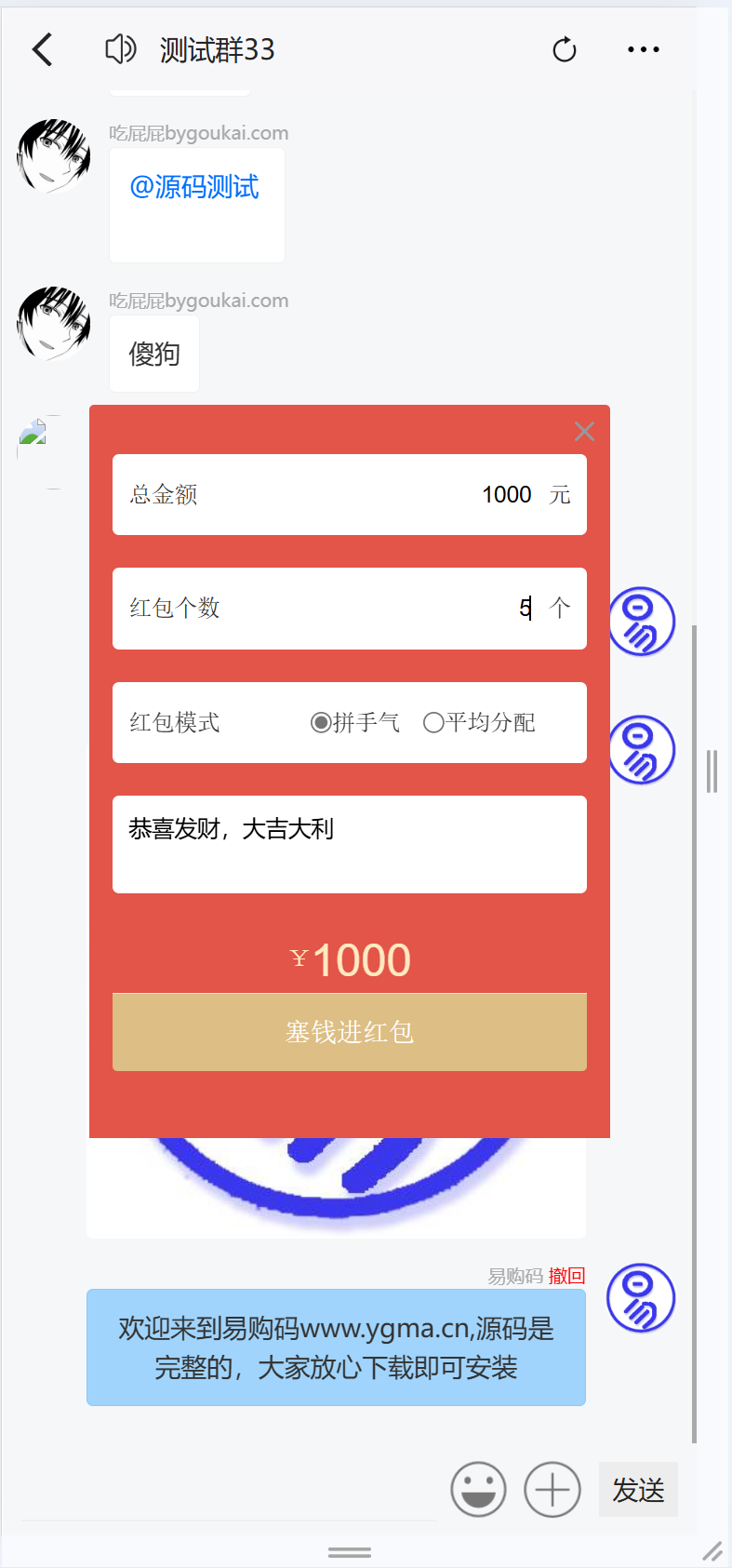 易购码-在线源码商城 工具源码 H5聊天室源码-聊天室源码在线聊天源码支持拼手气红包 https://ygm.88lb.cn/10975/