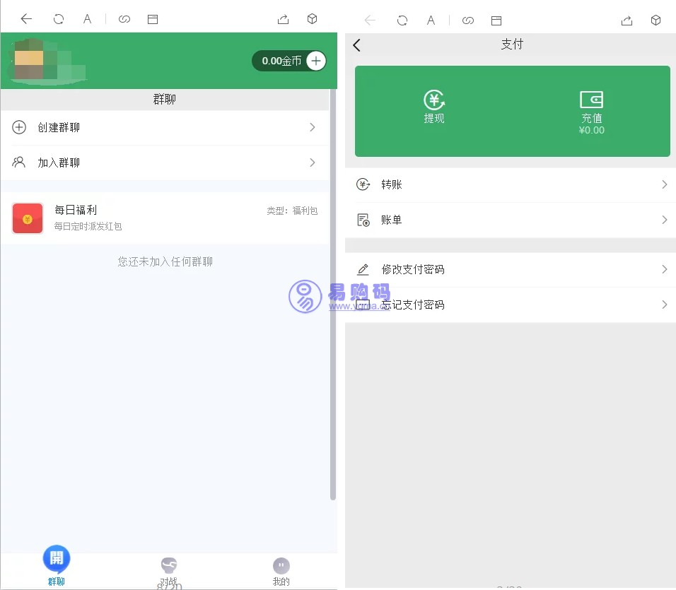 好友改了支付接口的版本,群聊红包直通车仿微信界面四合一玩法,扫雷/接龙/二八/牛牛全部完美可用,UI仿微信交互页面非常漂亮,机器人可在后台一键开启关闭,支持创建群聊,可直接拉好友扫码入群,自带每日定时福利发放功能,推广起来省去很多麻烦,带有支付密码功能,充值和登录均是对接派特,微信支付宝双通道,登录免公众号接口自带防封。提现改为上传二维码,后台审核打款,安全快捷。带完整搭建教程,不明白的看教程也能部起来。