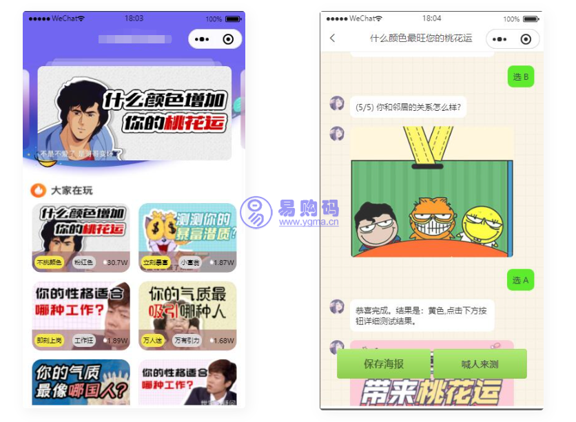 易购码-在线源码商城 小程序源码 无需服务器即可搭建的趣味测算流量主小程序 https://ygm.88lb.cn/11911/