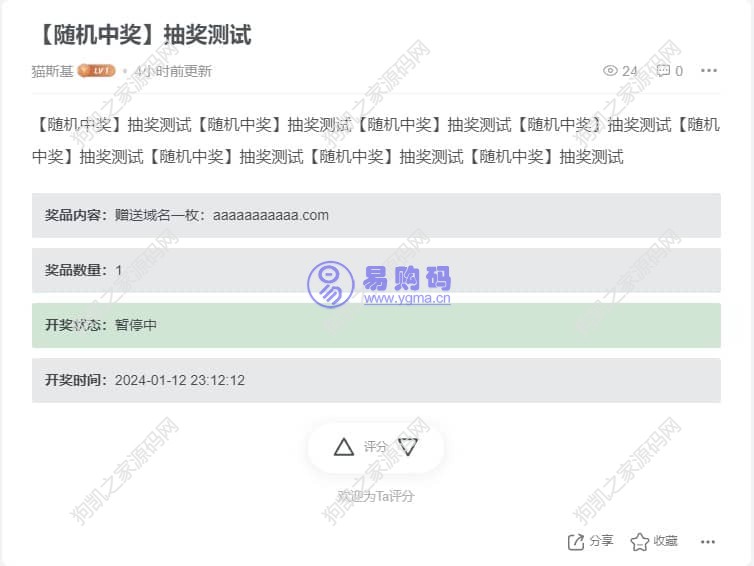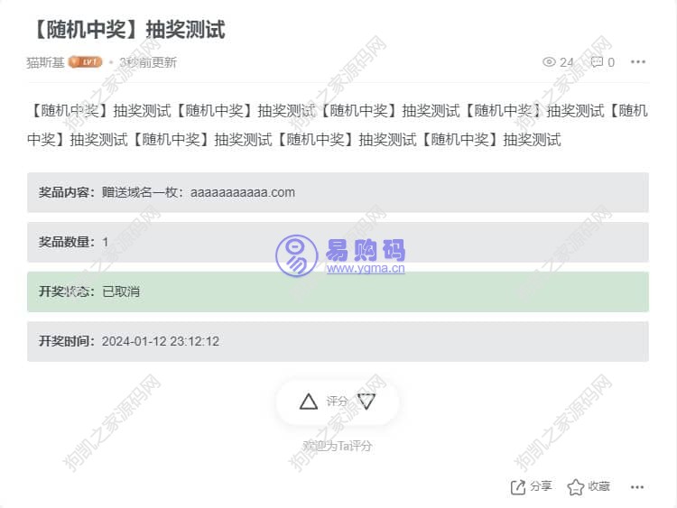 在子比主题的帖子里发布抽奖,帖子详情页显示抽奖信息