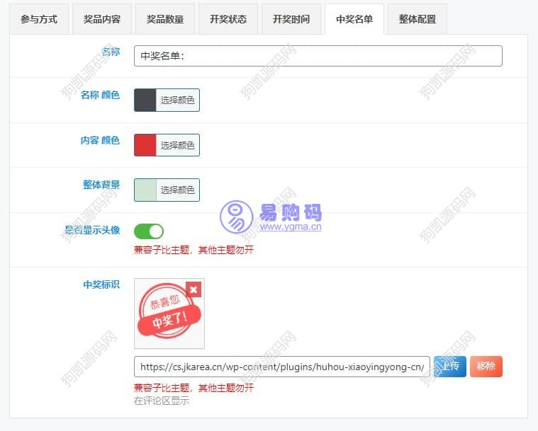 子比主题可设置是否显示中奖者头像。