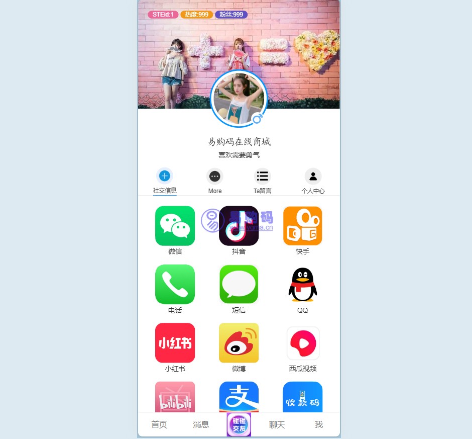 易购码-在线源码商城 工具源码 社交个人主页html源码 https://ygm.88lb.cn/13941/