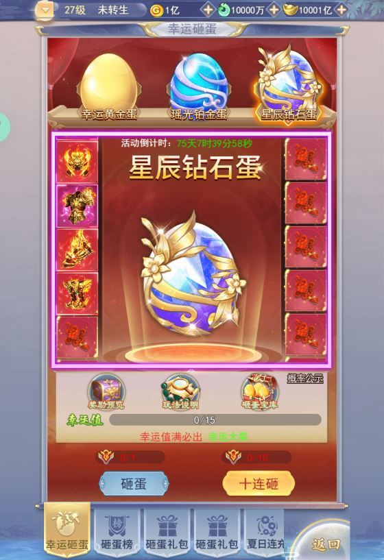 5.修复砸蛋:幸运黄金蛋、瑶光铂金蛋、星辰钻石蛋!