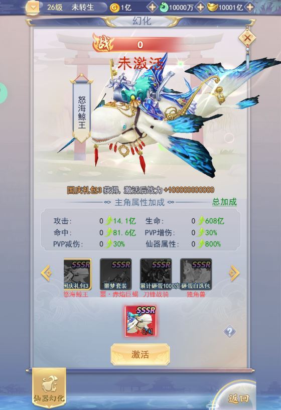 2.新增幻化:神兵、仙翼、时装、天珠,冠名图鉴到350!