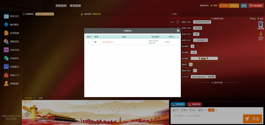 财经直播源码 房间多开+游客互动+聊天审核,这个是去年的东西了,最近有会员要这个,就顺带发出来了。