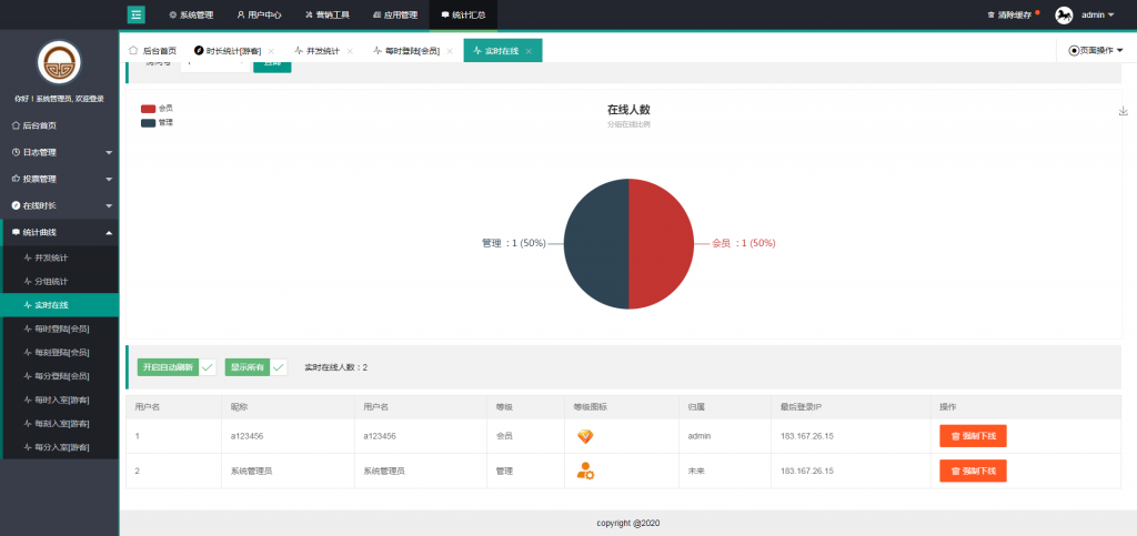 办理员能够在后台设定机器人,前台能够指定机器人说话和发布广告,添加直播间的气氛,进步直播间的活跃度,让更多游客发生爱好参加谈天。潜在试用客户进入体系,看到会员列表有很多人,已然有这么多人在跟从这家公司在做,阐明公司实力强,服务好,一起机器人的互动功用更激烈的烘托了谈天气氛,此刻潜在投资者的从众心思一定是会发挥作用,极大的进步了潜在客户的转化率。