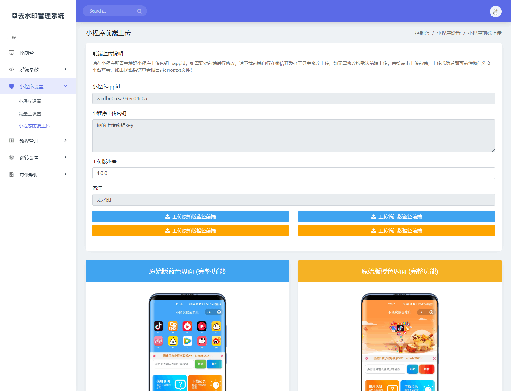 最新去水印小程序系统 前端+后端全套源码 多套模版 免授权