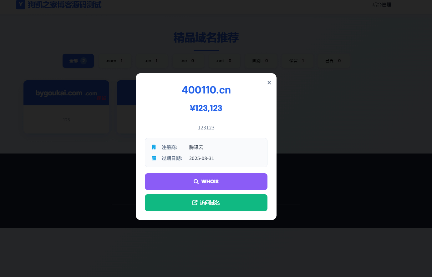 这是一款带简易后台管理的米表系统,而且自适应电脑端和手机端,跟之前的搭建方法不一样,简单的测试了很简约,后台带有添加、管理域名,并且前台带有WHOIS域名和访问域名按钮