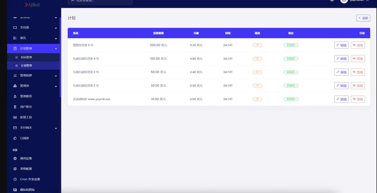 易购码-在线源码商城 网站源码 海外ajbell投资理财源码-英文投资理财源码 https://ygm.88lb.cn/2107/