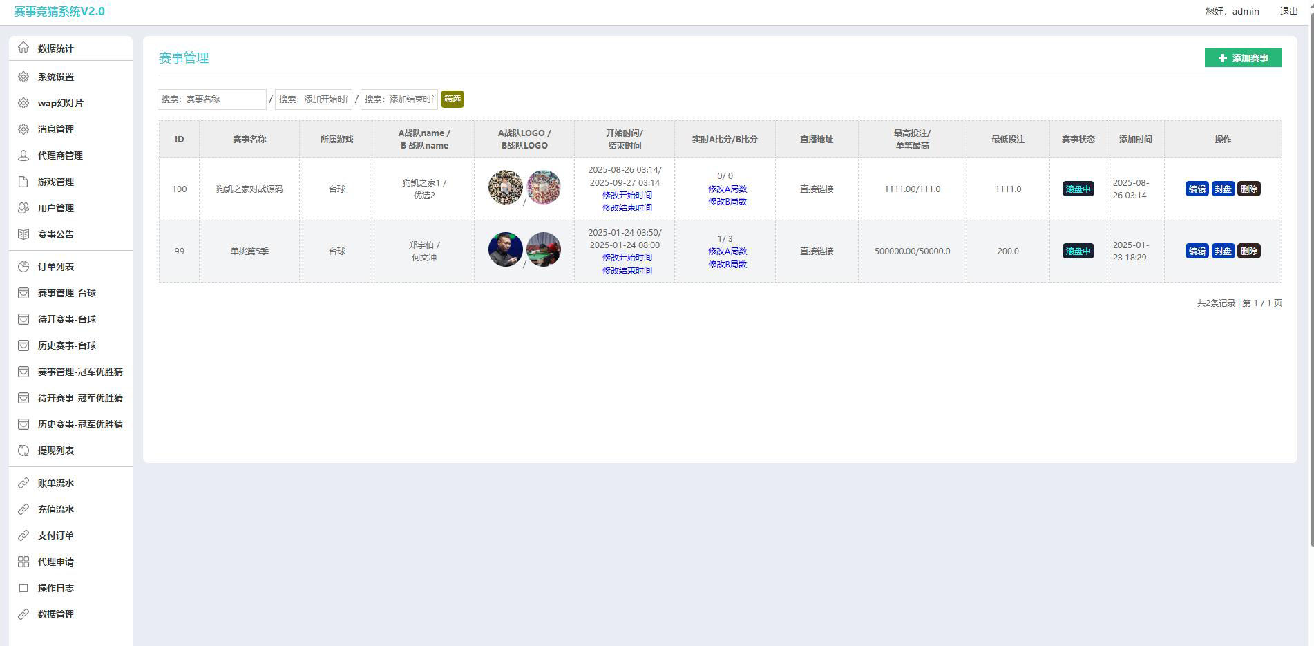 我没时间看了,赛事自定义设置,也有冠军赛事,自定义赔率,