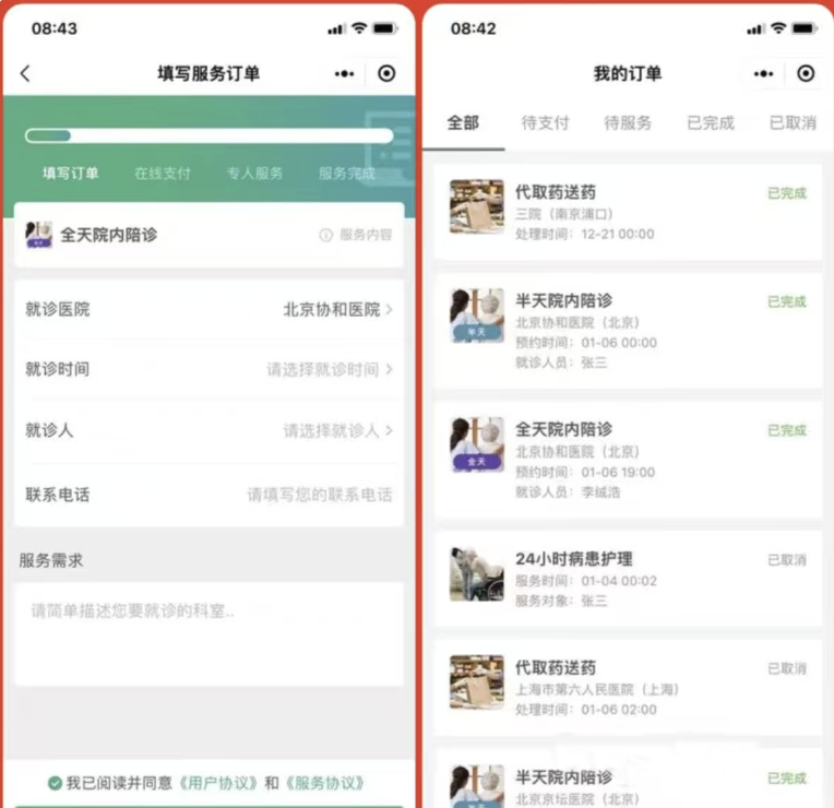 嘀嗒陪诊系统小程序源码,陪诊管家功能齐全只是单一小程序没有后端。