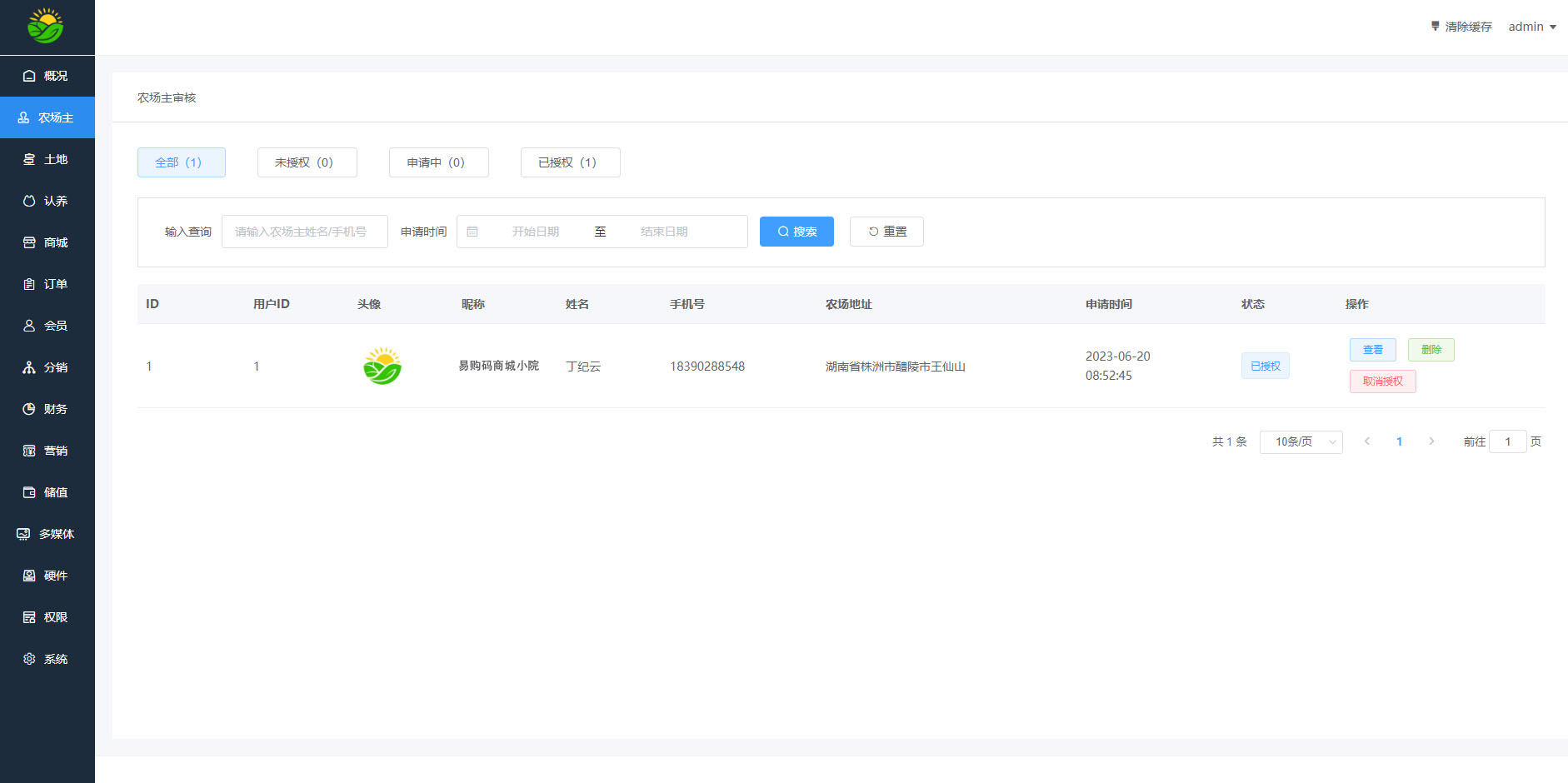 订单管理:土地订单 认养订单 商城订单 配送订单 商城退款订单 评价管理