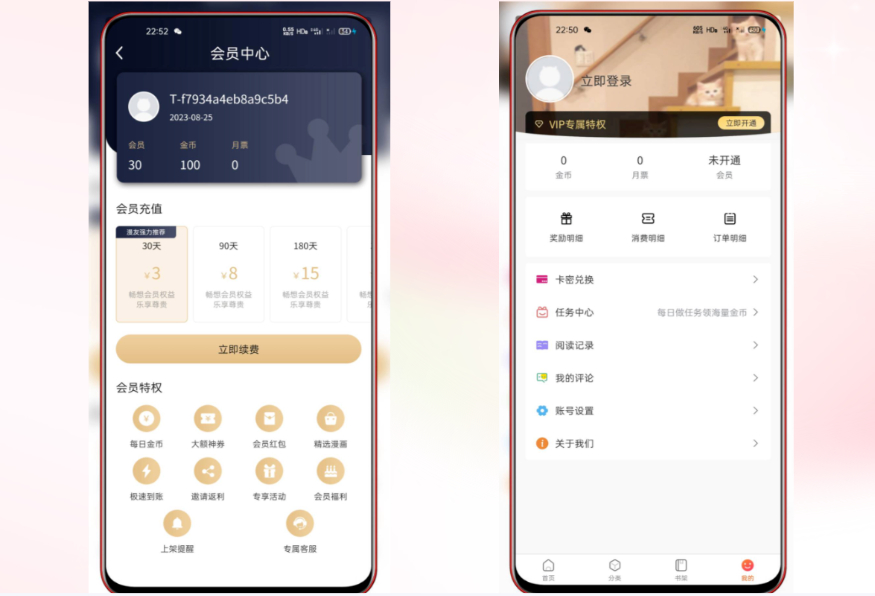 4、会员阅读/月票功能