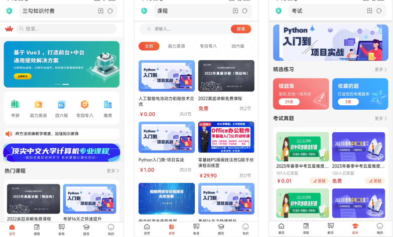三勾知识付费系统是以“轻量级”为核心设计的开源系统。它的特点是简洁、易用、功能聚焦,适合不需要过多复杂功能的创作者使用。用户可以轻松搭建起自己的知识付费平台,并实现课程内容的销售。
