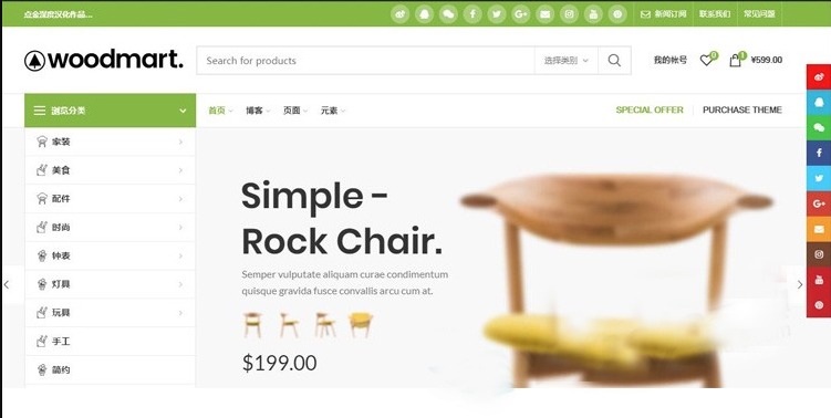 WoodMart是一个WordPress商城主题,专注于用户体验第一WoodMart采用了功能强大的AJAX技术为用户提供了非常快速和无缝的网上购物界面。建立任何形式的网上商店,并开始赚取被动收入流。70个各行业商城模板。Html5+css3响应式,主题文件80%以上汉化,插件80%以上汉化。 模板用途:跨境电商,电子商务,产品展示 附带插件:Visual composer可视化前端编辑器、woocommerce电子商务、revslider幻灯片、layerslider层幻灯片、支付宝、PayPal