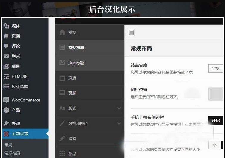 主题设置面板