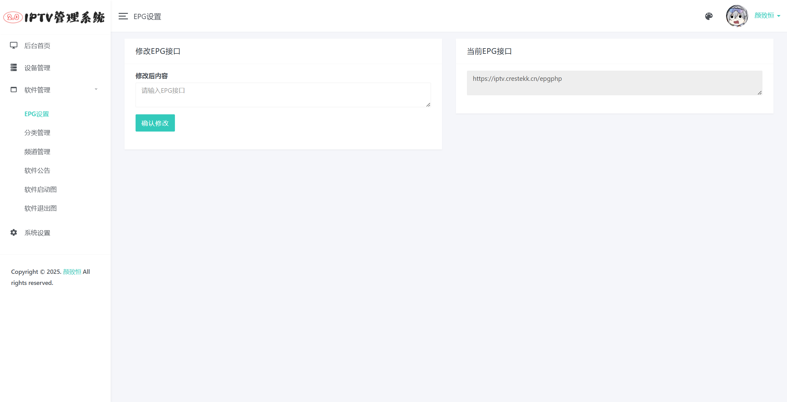 这是一个电视直播源管理系统,主要用于对接定制的DIYP影音,实现定制化的电视直播软件。软件对接教程请看后面。灵感来源于恩山无线论坛内的《IPTV管理系统》,因为有些功能我用这不是很方便,所以自己写了一个,感谢大佬们提供的DIYP软件,我只是根据接口写了后台。