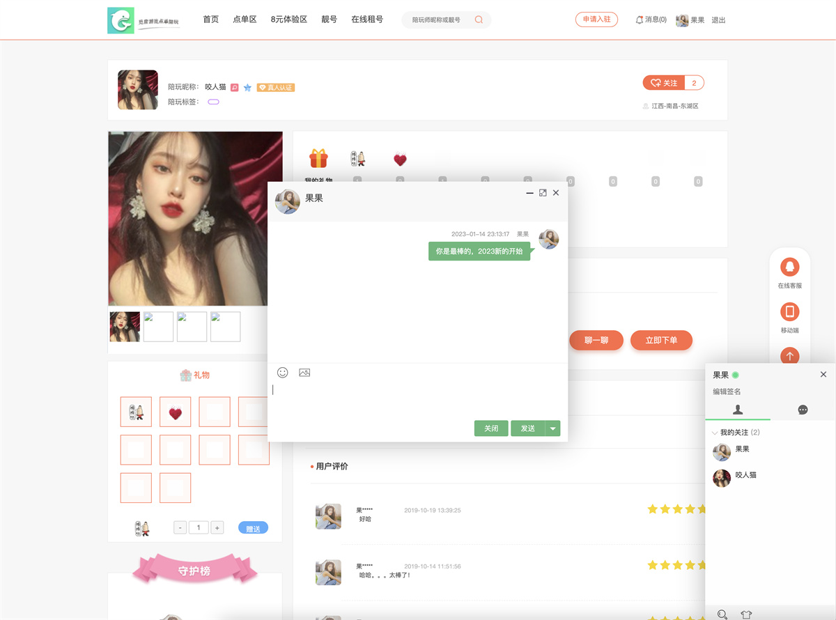 PHP游戏陪玩点单,在线租号,支持在线认证入驻,带有工会系统、礼物系统,站内私信、陪玩师评价打分接单星级系统,自带三级分销,推广返利。