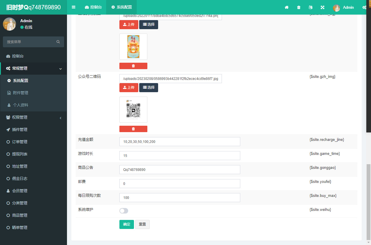 2)默认后台账号密码 admin 123456