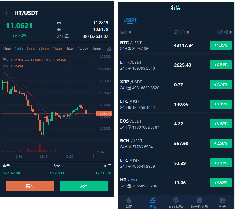 VUE源码/交易所仿火币模式/法币交易/币币交易/合约交易/期权交易/流动性挖矿/UP理财/LEO认购