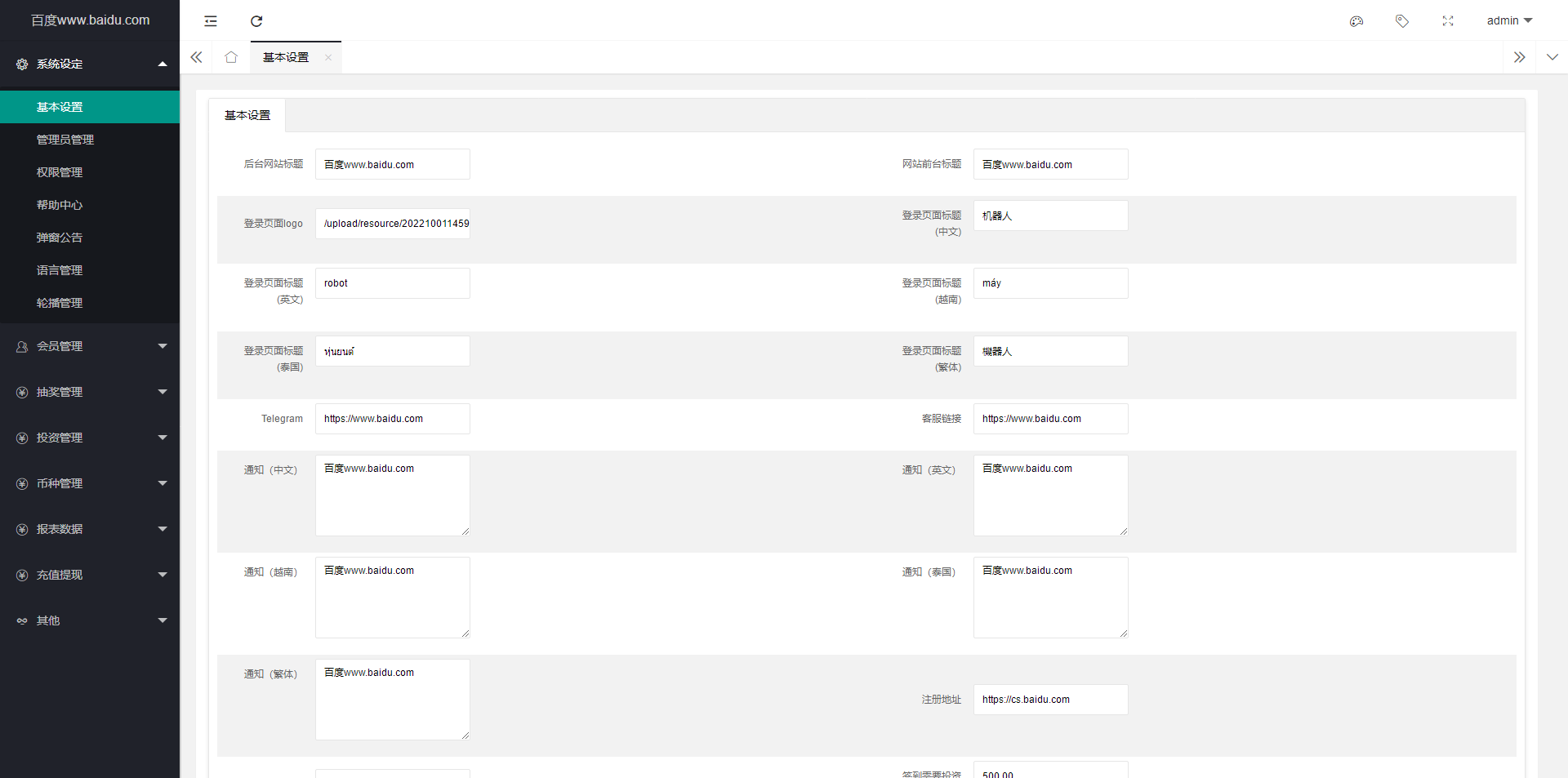 五种语言:简体中文+英文+越南语+泰语+繁体中文