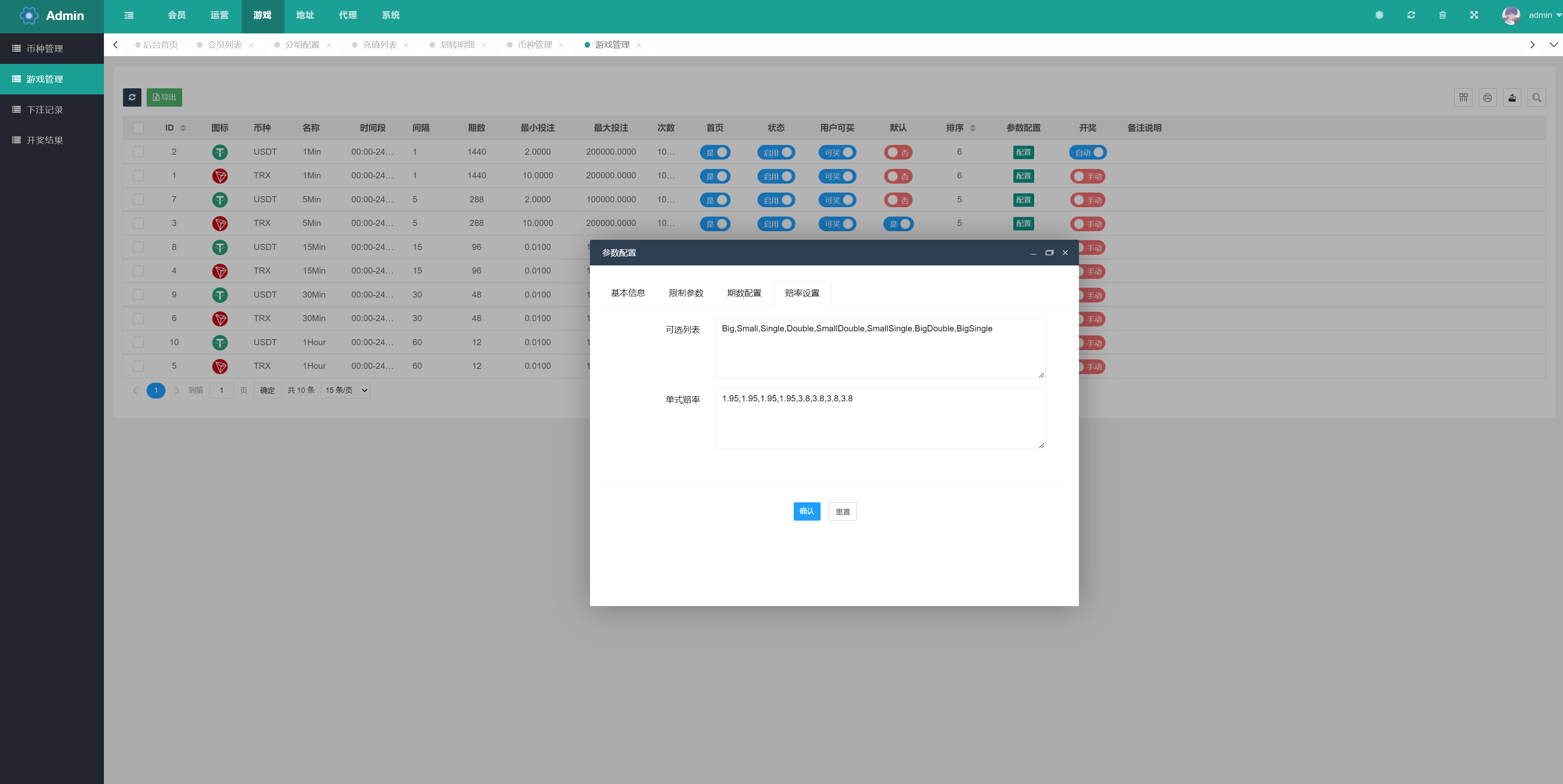 分享一套支持trx投注竞猜的源码、网上都是编译后的没有完整得脚本、本次分享的附带前端uinapp源码完整得脚本跟任务、前端支持九国语言,后台可显示隐藏开启语言、开奖界面K线正常,开奖方式支持手动、自动开奖
