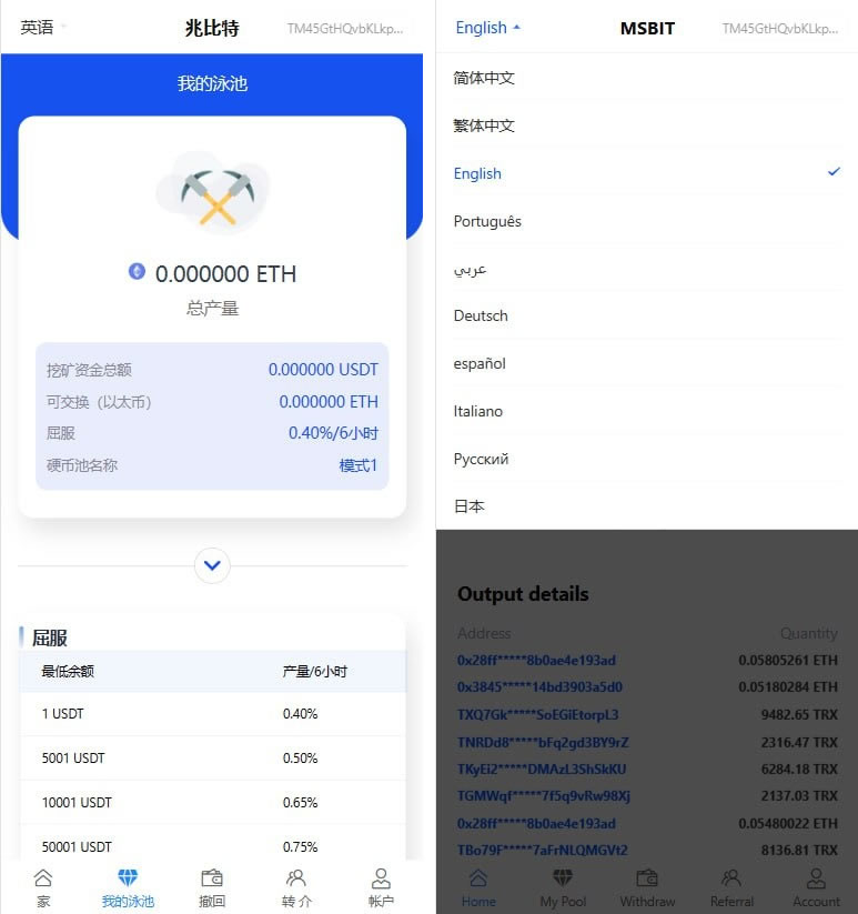 挖矿秒u源码支持ERC TRC。授权提币正常,支持10国语言,带详细安装搭建教程,建议不要在后台保存授权私钥,走官方提币通道