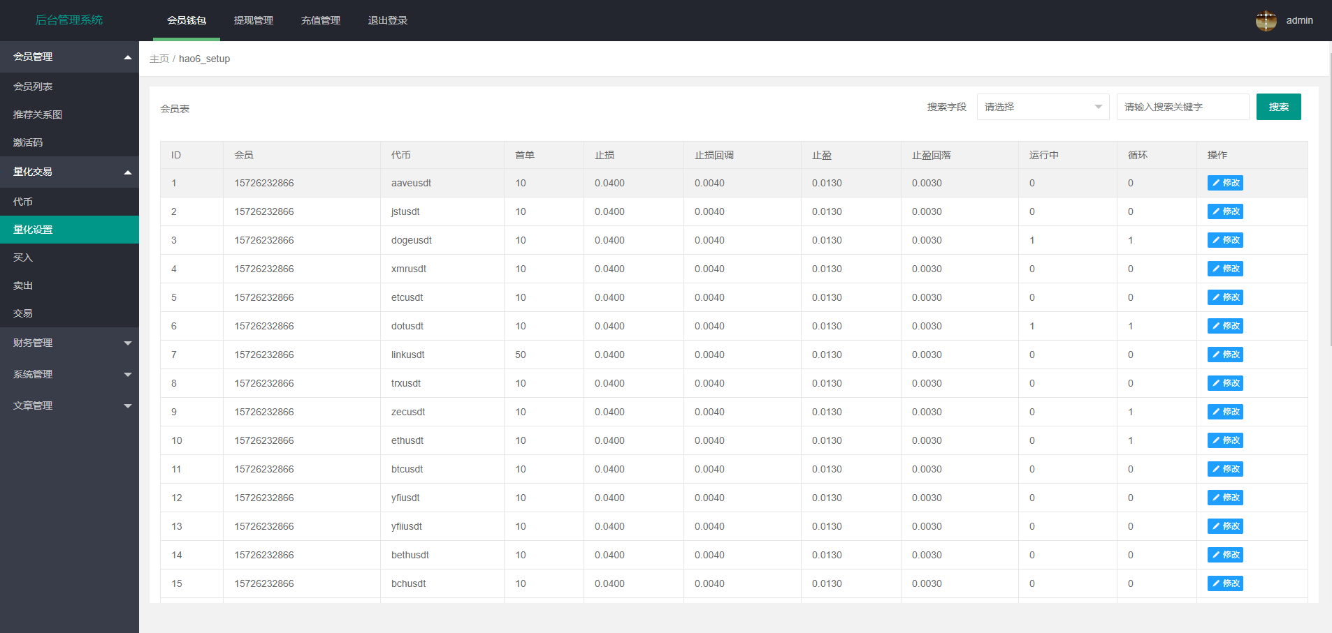 本系统目前默认使用TRC20-USDT充提,也可改成ERC20-USDT等