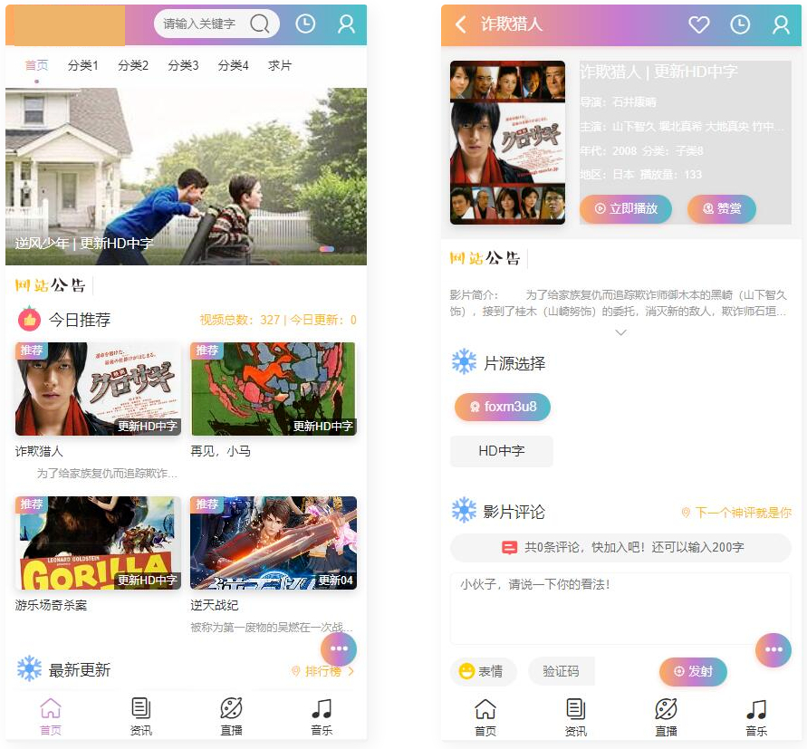 新版本七彩影视双端源码支持PC+WAP+APP三端对接苹果cms后台