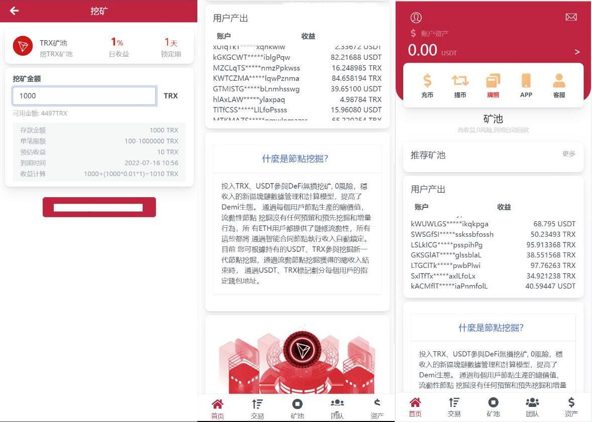 多语言区块链挖矿源码/trx理财源码/云挖矿系统源码/USDT质押系统源码/充币提币功能